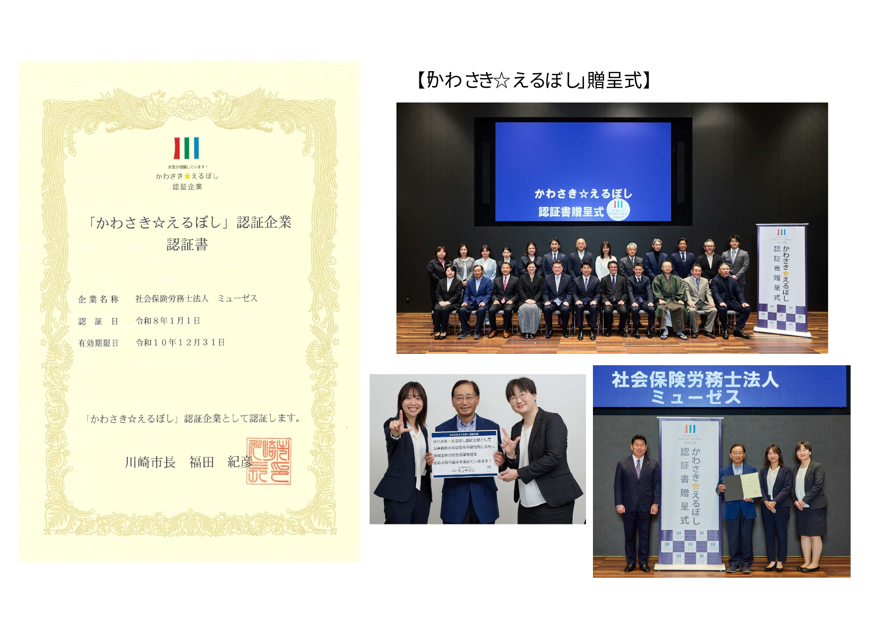 川崎市から「かわさき☆えるぼし」の認証を受けました。